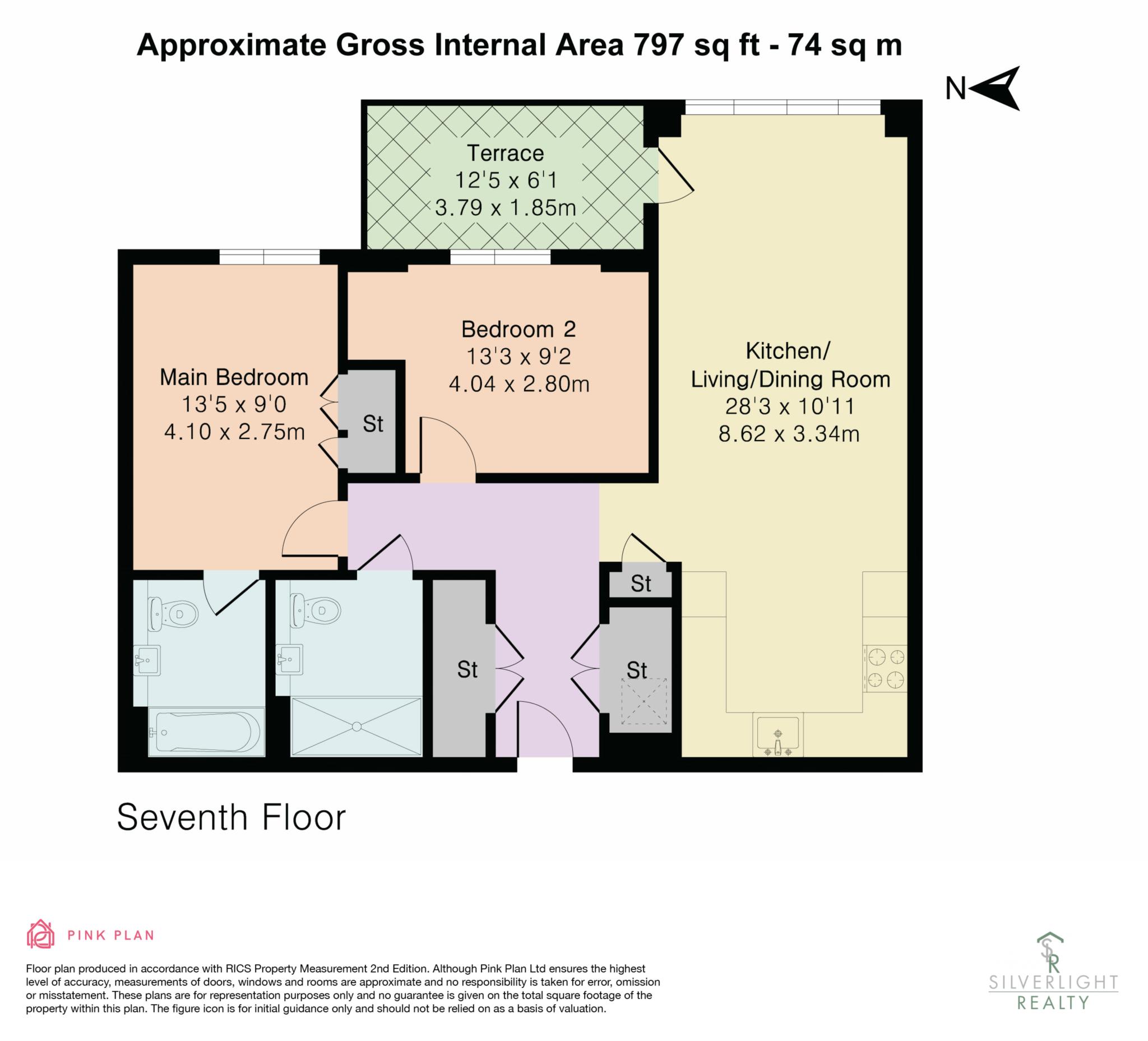 The property comprises 2 double bedrooms, 2 bathrooms (one en suite) and built in storage.